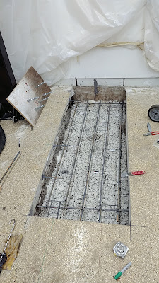 Garage floor cutout.